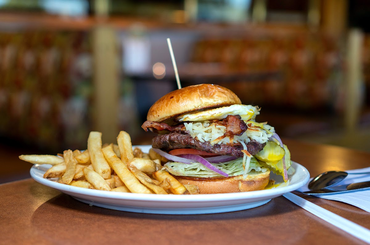 Step inside, and you'll immediately feel the nostalgic charm of a classic American diner, with decor that transports you back in time. Large windows bathe the space in natural light and provide lovely views of the surrounding area, including a unique vantage point to watch planes take off from the nearby airport. The inviting ambiance is complemented by friendly service that aims to make your visit as enjoyable as possible.