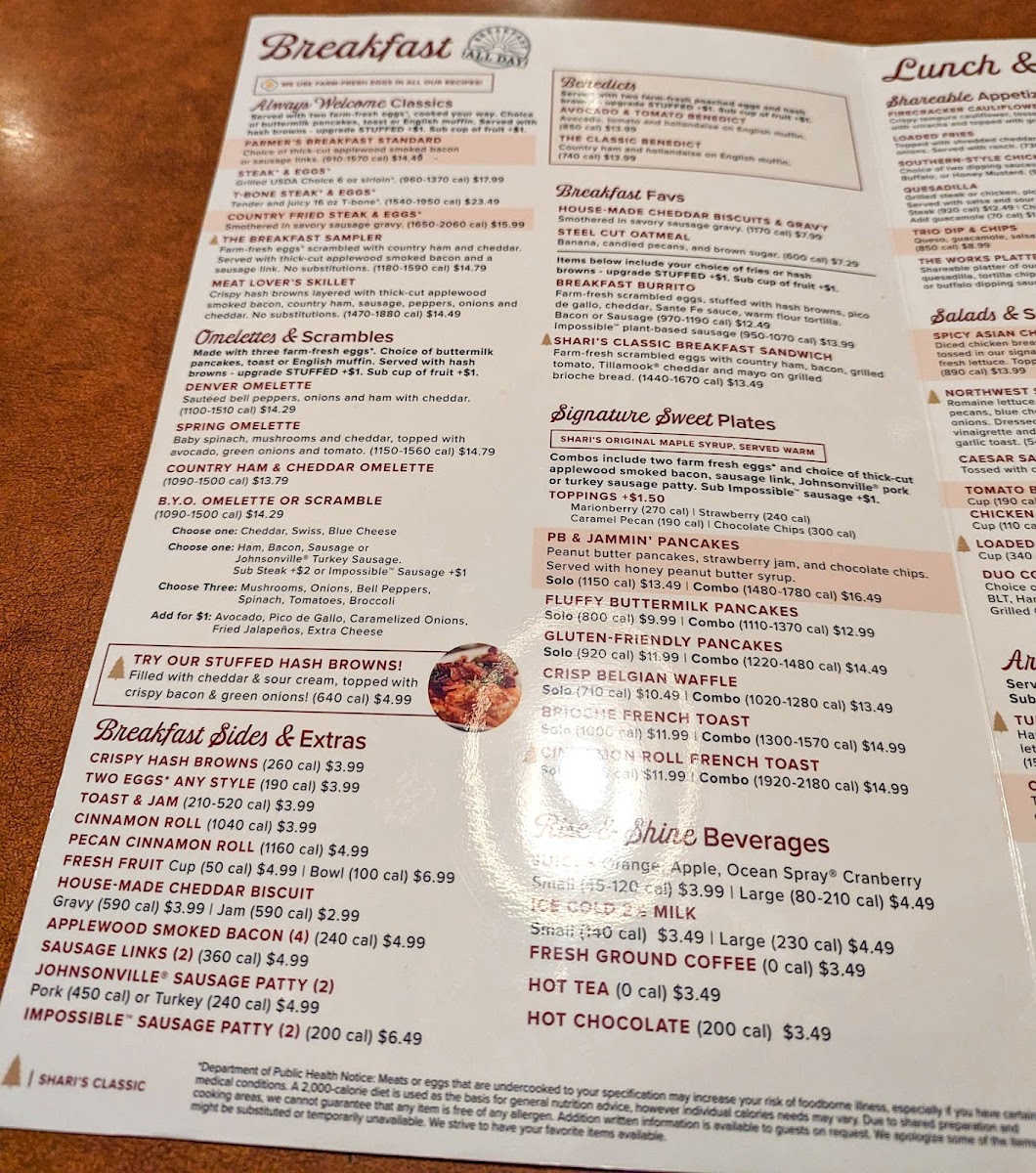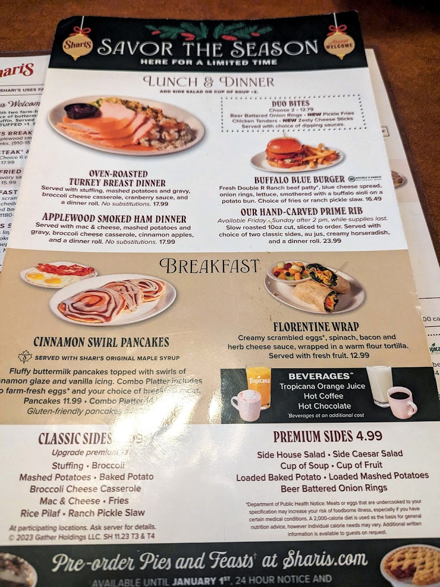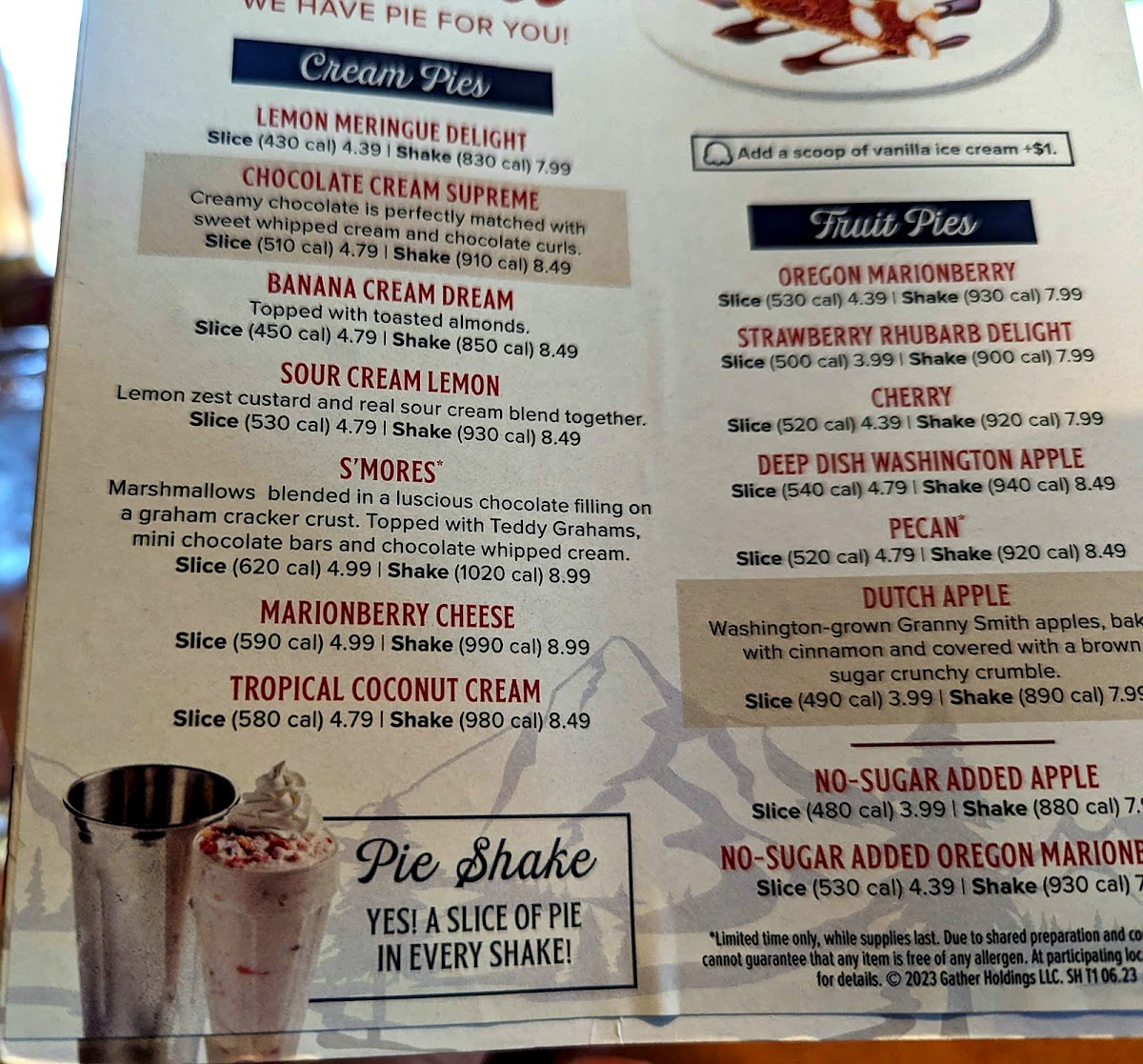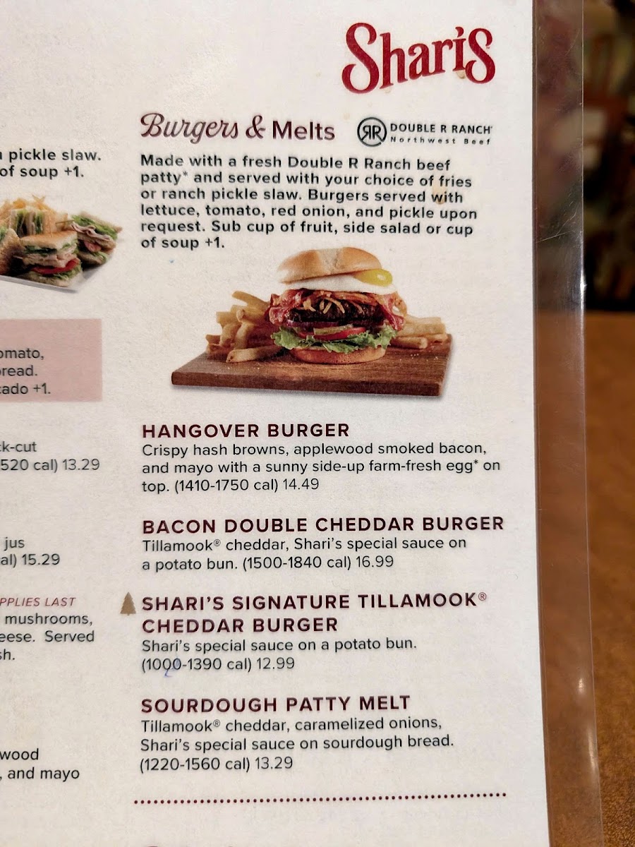 Shari's Cafe and Pies Menu